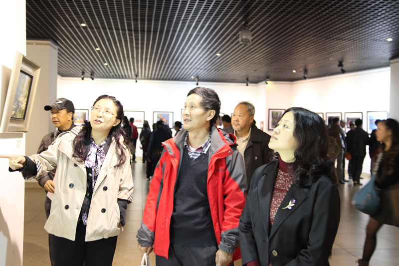 市委常委、宣传部长、文联主席姜小林(右一),市委宣传部副部长、文明办主任李蓉(左一)正在观看展览。