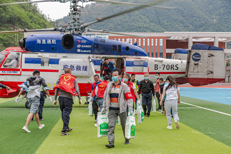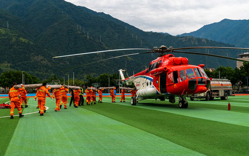 直升机在石棉中学运送救援物资 胡志毅/摄