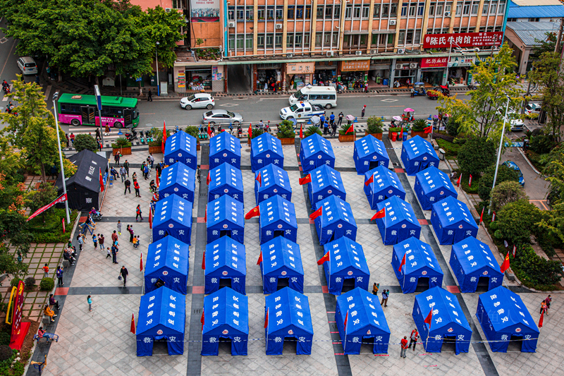 石棉县王岗坪乡安置点内,医务人员正在安置受灾群众 黄刚/摄